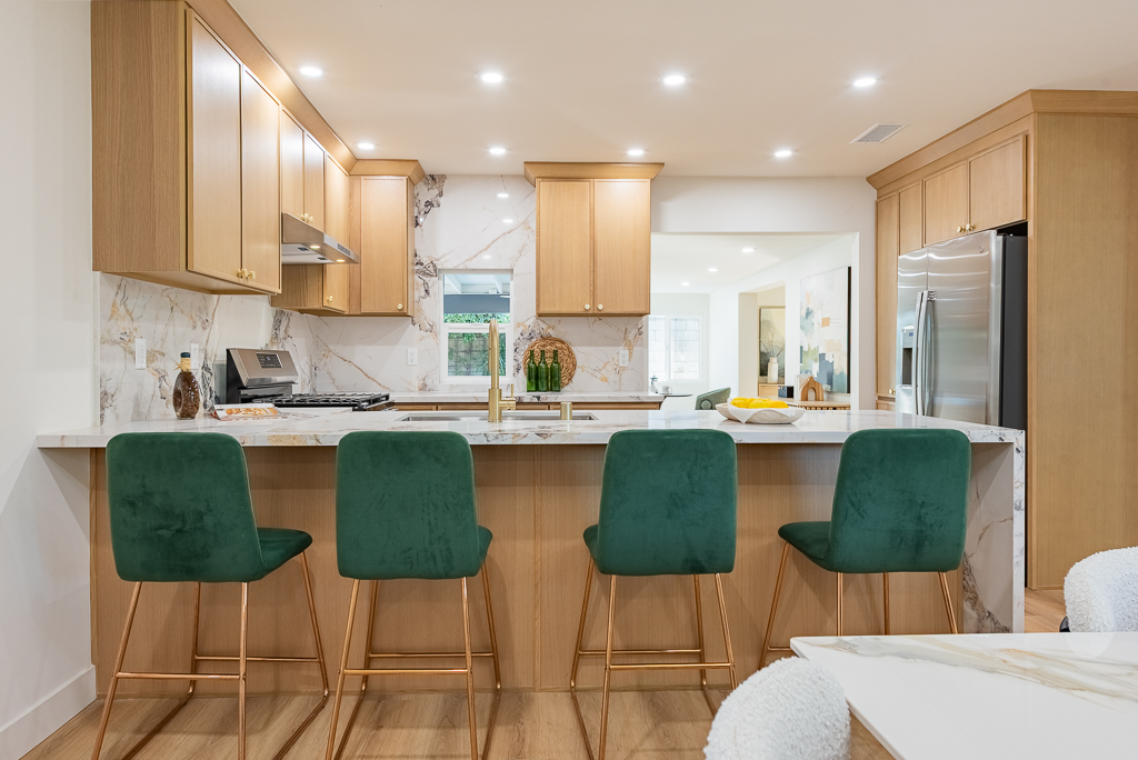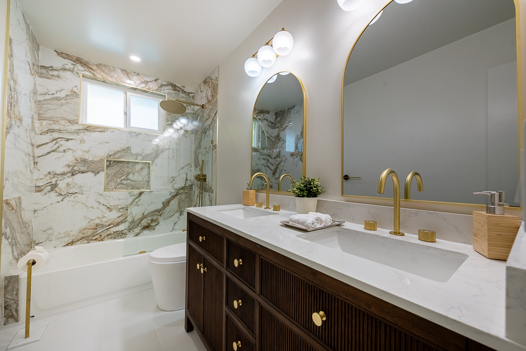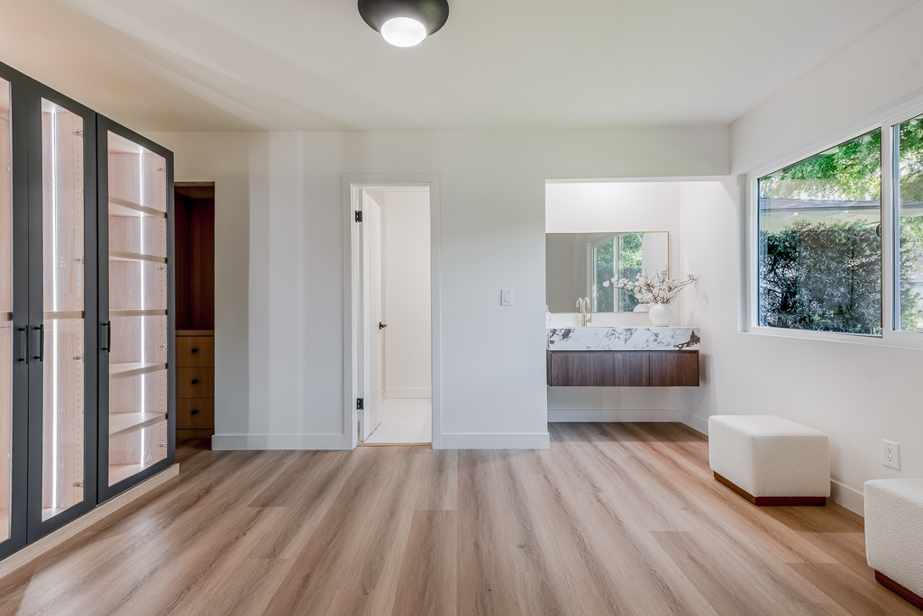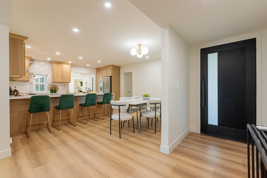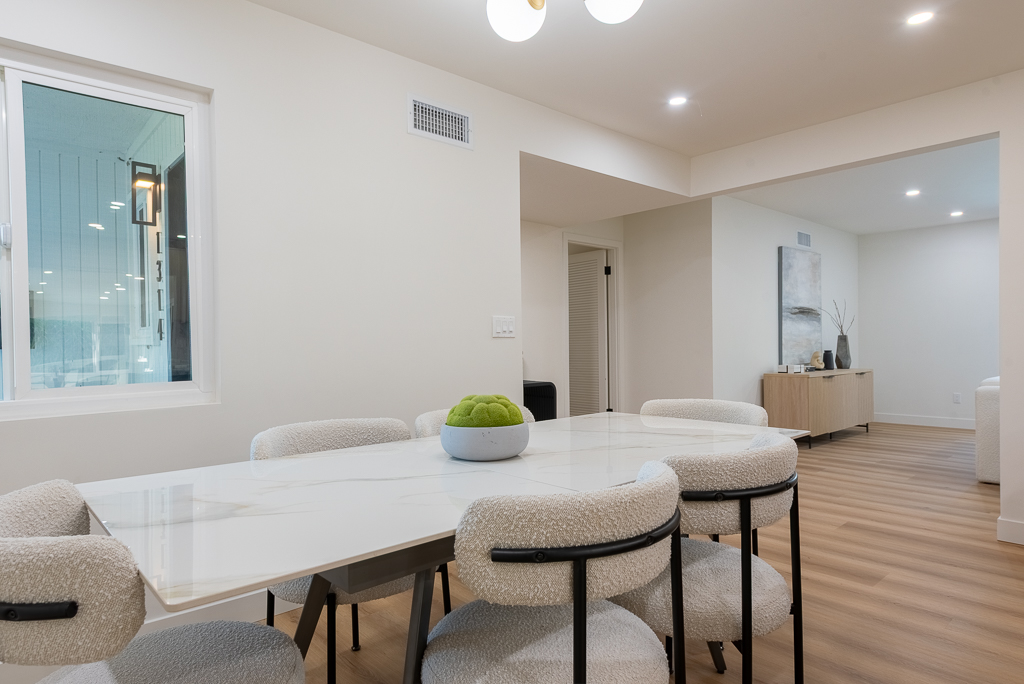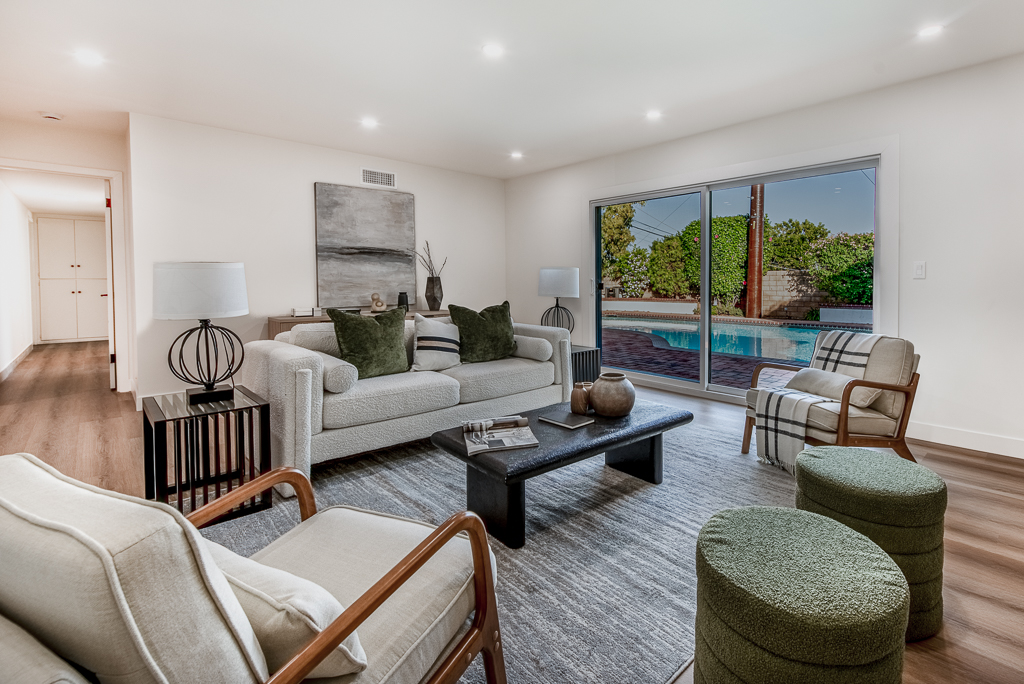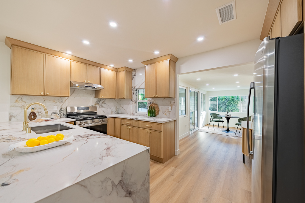 Single-story Ranch Style home with ADU potential, Pool, Sauna, fully remodeled, new roof, cul-de-sac location in Hacienda Heights. This beautifully upgraded 4-bedroom, 3.5-bath residence sits on an 9,298 sq ft lot and offers a seamless blend of modern design and resort-style living. The open-concept layout is filled with natural light and features a formal living room with a custom Venetian plaster fireplace, an elegant dining area, and a spacious family room with a second fireplace and built-in dry bar with wine refrigerator, ideal for entertaining. The designer kitchen is equipped with a waterfall peninsula, quartz countertops, slim shaker cabinetry, a custom backsplash, and a full suite of stainless steel appliances including a gas range, hood, refrigerator, and dishwasher. A versatile sunroom provides flexible space for an office, lounge, or playroom. Extensive upgrades include new vinyl flooring, fresh interior and exterior paint, updated moldings, modern doors and hardware, vinyl windows, and new sliding glass doors. All bathrooms have been fully remodeled with custom tile, new vanities, and designer fixtures. The private backyard offers a heated pool with new white epoxy finish and updated waterline tile, expansive paver patio, multiple covered seating areas, and a custom sauna beneath a vine-covered pergola. Additional highlights include a new roof, updated electrical, central HVAC (2022), new garage door with frosted glass panels, new front entry door with Ring doorbell, and a detached two-car garage with ADU potential for guest house or rental income. The grounds are enhanced by mature fruit trees including grapefruit, pomegranate, orange, lemon, tangerine, and avocado, all conveniently located near shopping, dining, schools, and the 60 freeway.
