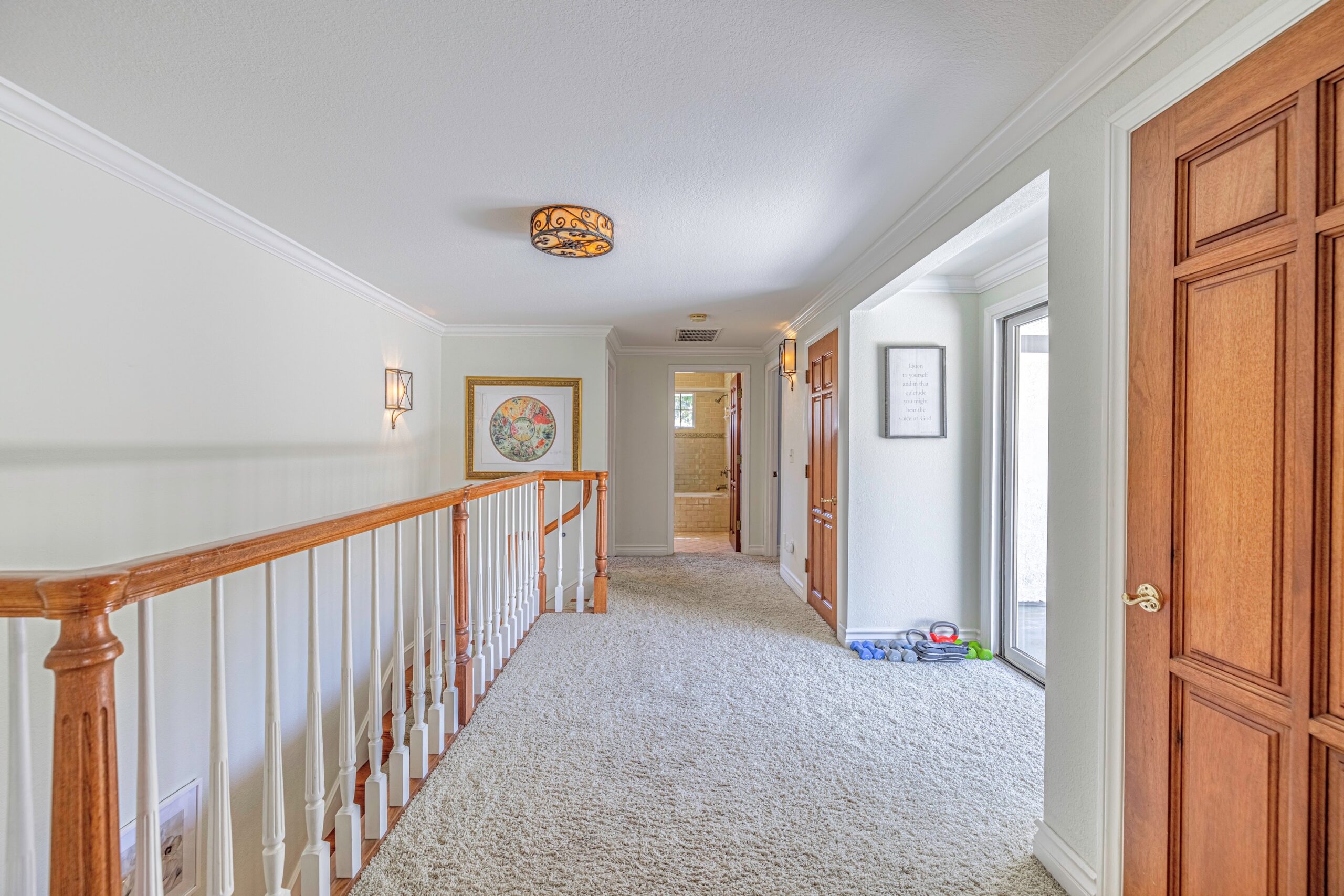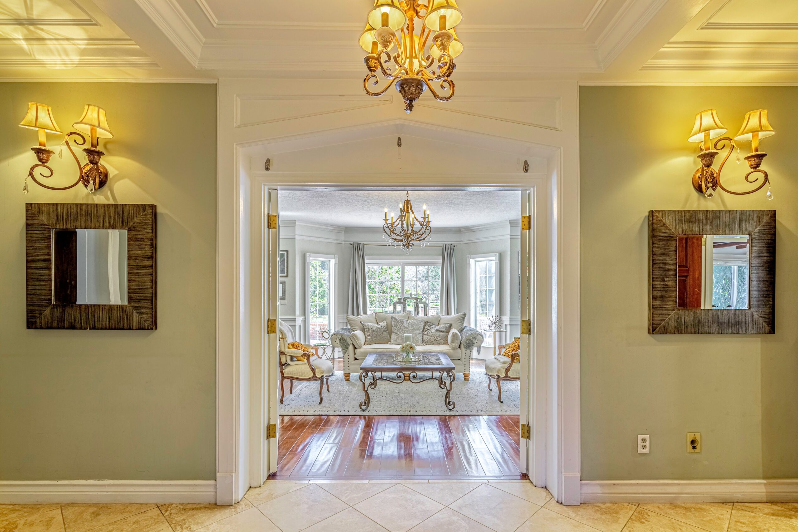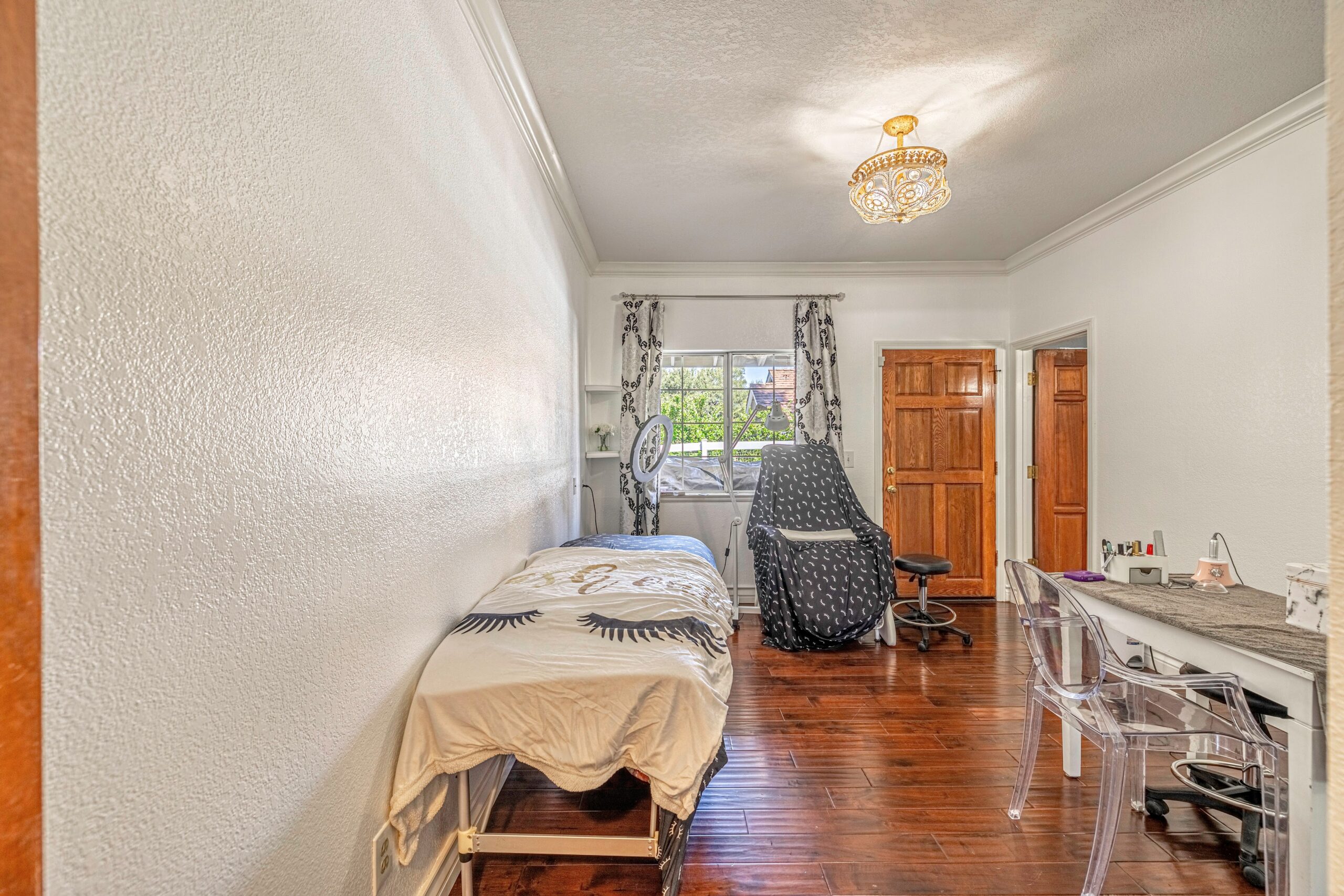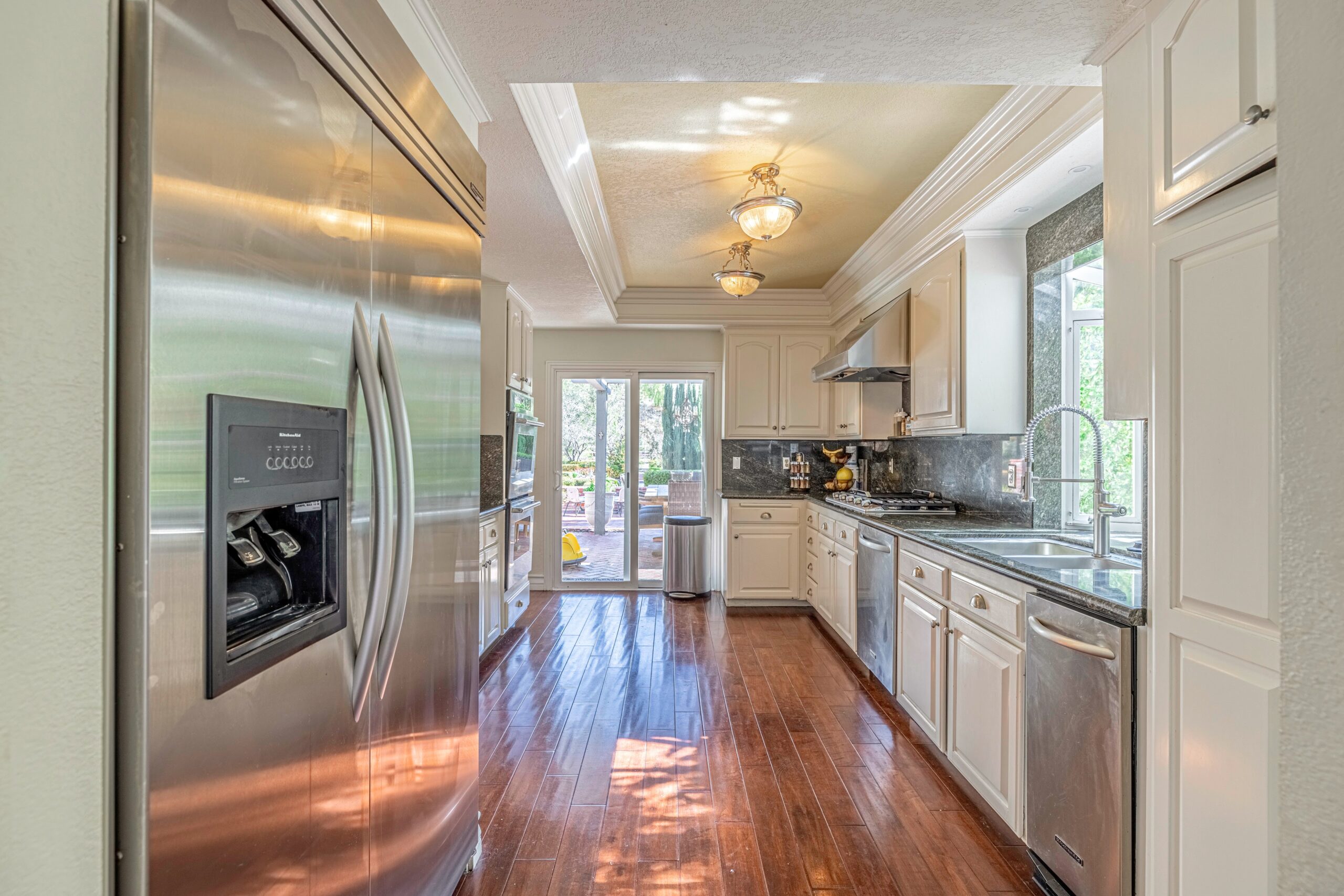 Outdoors, enjoy a tranquil setting with mature oak and fruit trees, a sparkling pool, and even a running creek—all visible from multiple vantage points, including the serene morning-coffee-and-evening-wine spots.